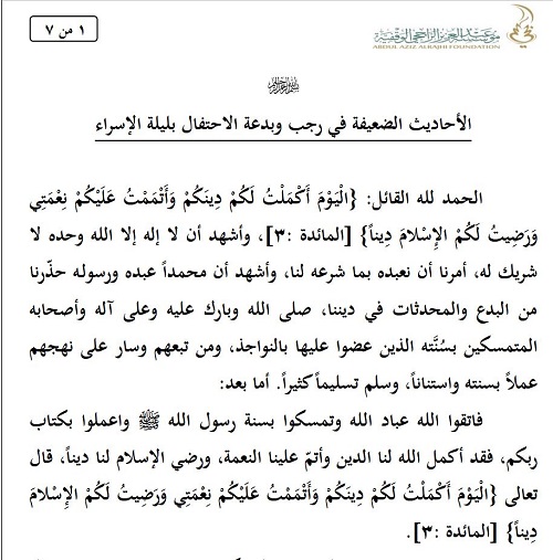 الأحاديث الضعيفة في رجب وبدعة الاحتفال بليلة الاسراء والمعراج